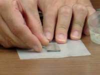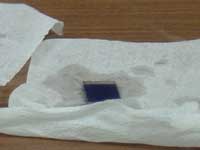 8.染色された焼結膜は軽く水洗いして,乾かします.急ぐときはドライヤーで乾かすのがよいでしょう.