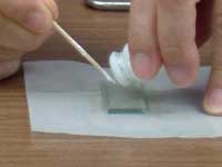 3.両端のセロハンテープの間に酸化チタンのペーストを1滴垂らします.
