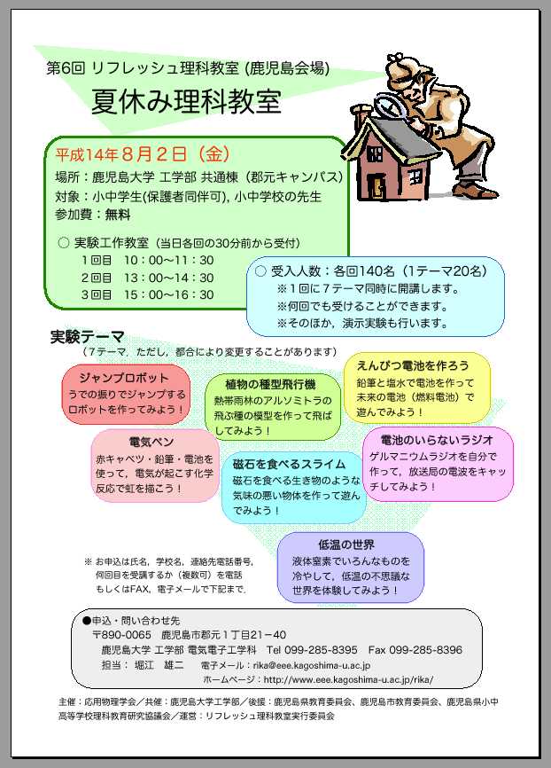リフレッシュ理科教室 鹿児島会場のページへようこそ