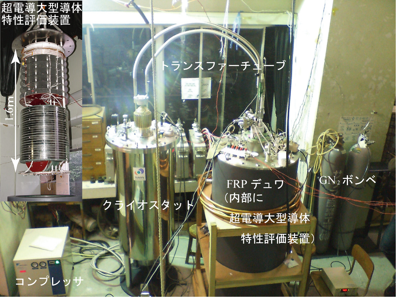 超伝導機器の実用化研究に資するために、高温超伝導大型導体の種々の特性評価が可能なコンパクトな装置を開発し、導体の電磁特性を評価しています。